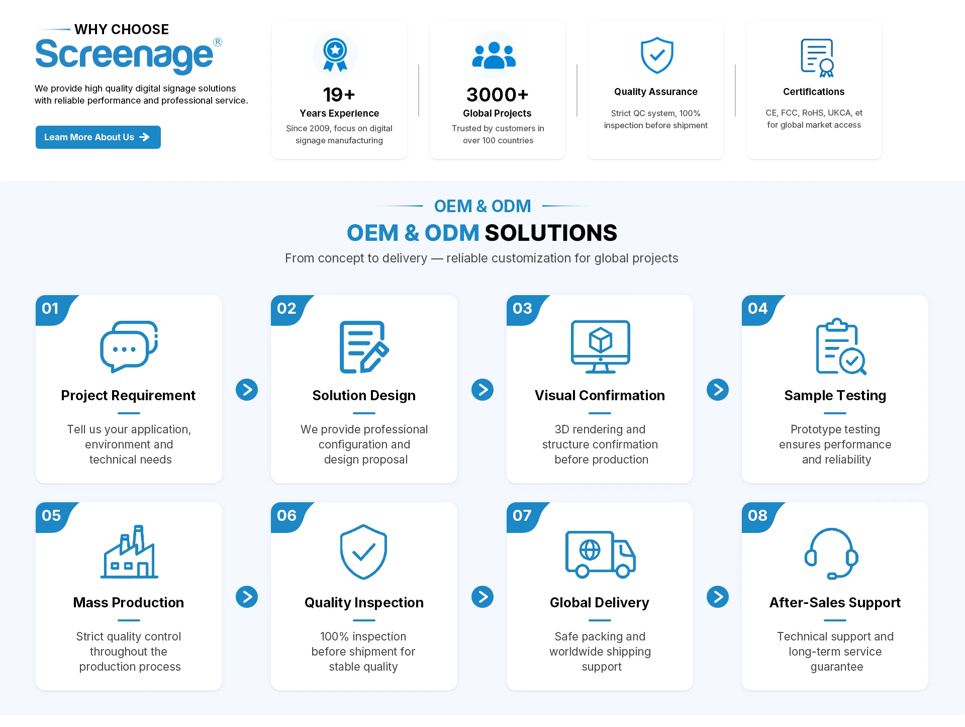 Founded in 2008, Screenage is a professional manufacturer specializing in commercial LCD display solutions, with over 15 years of experience in the digital signage industry.