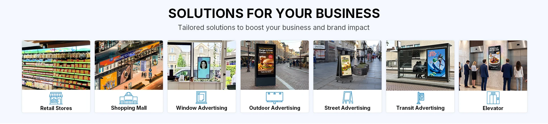 We are committed to the latest technology applications, design, and R&D of advertising display solutions, widely used in supermarkets, shopping malls, hotels, banks, hospitals, transportation, and other commercial environments.